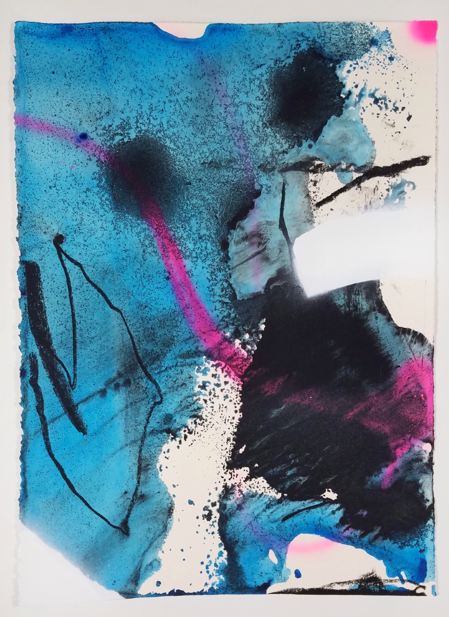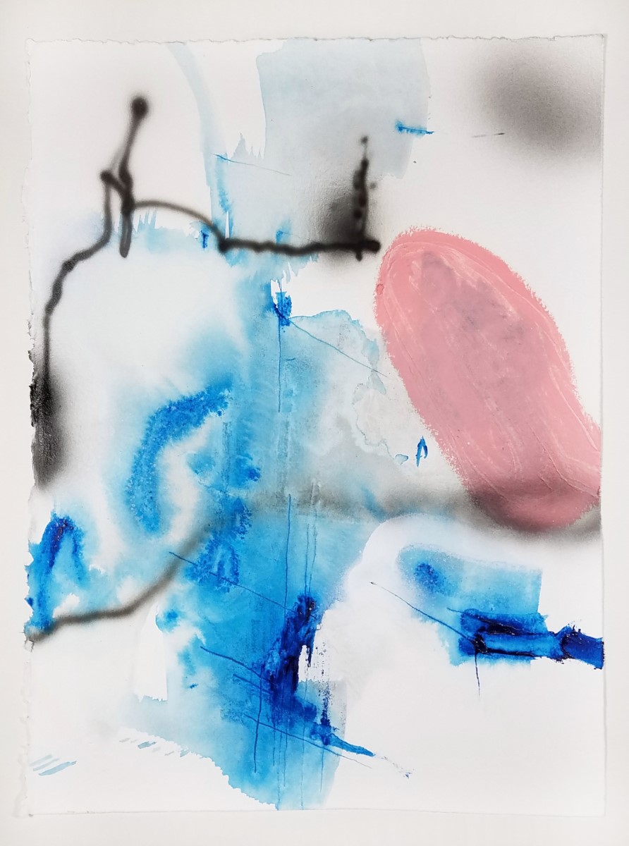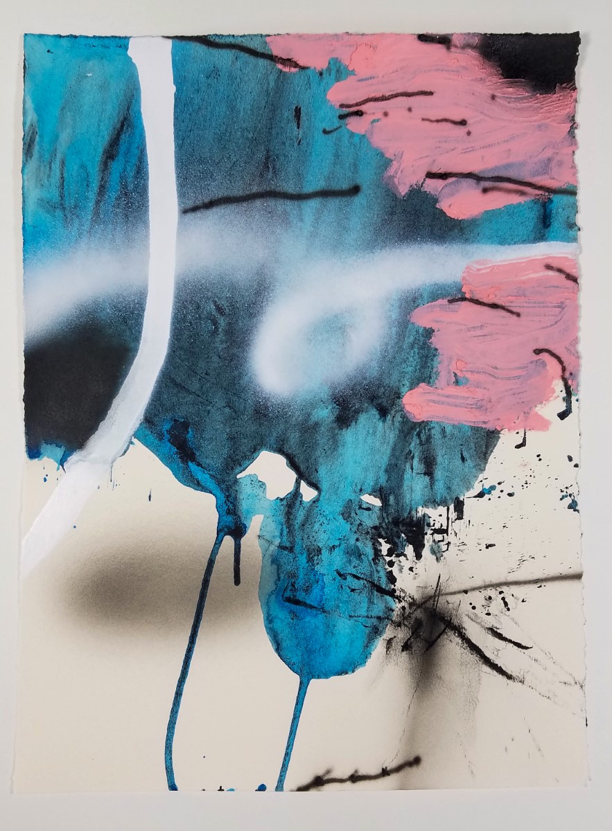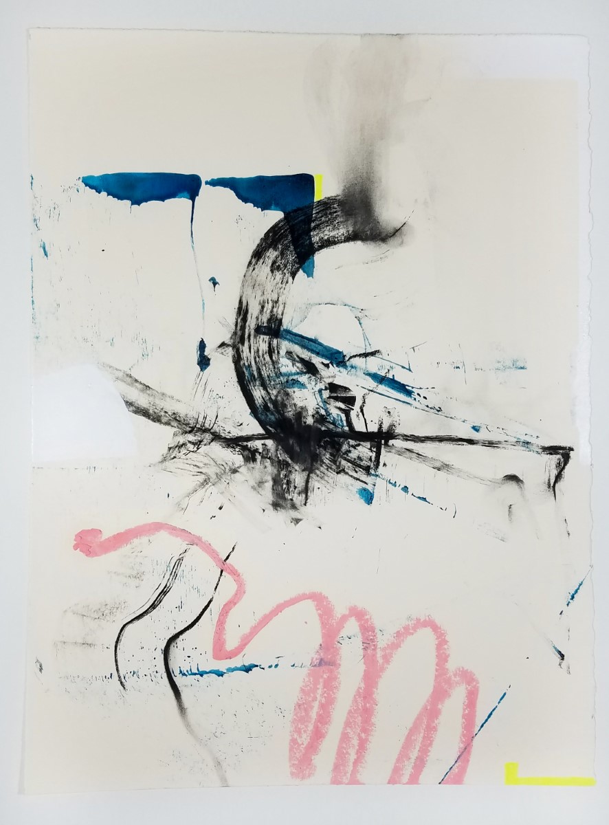 All works on paper are untitled, mixed media on printmaking paper. The dimensions are variable but most are 9x12 inches or 12x15 inches.
